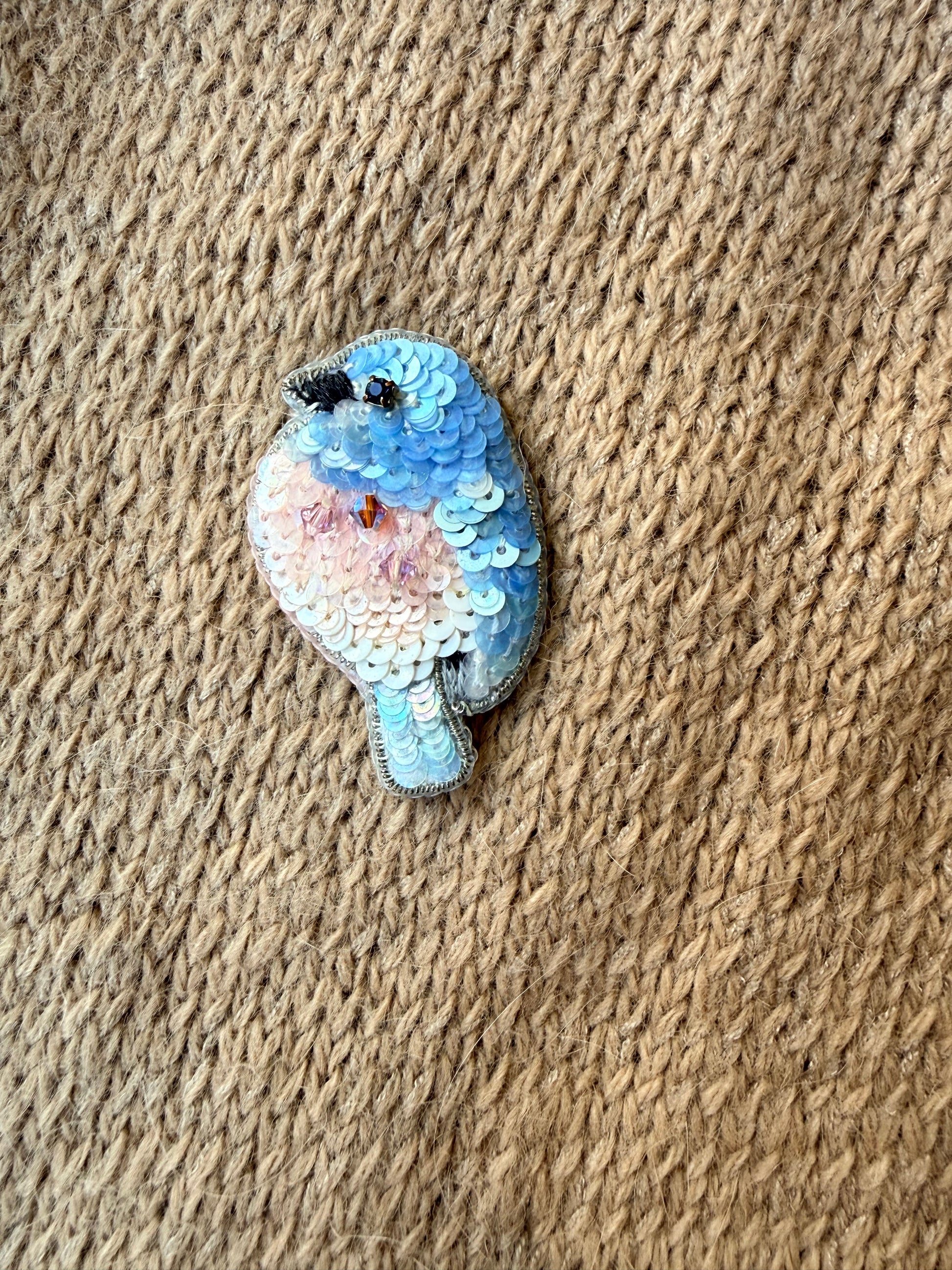 Broszka „Ptaszek” - ręcznie haftowana, unikat