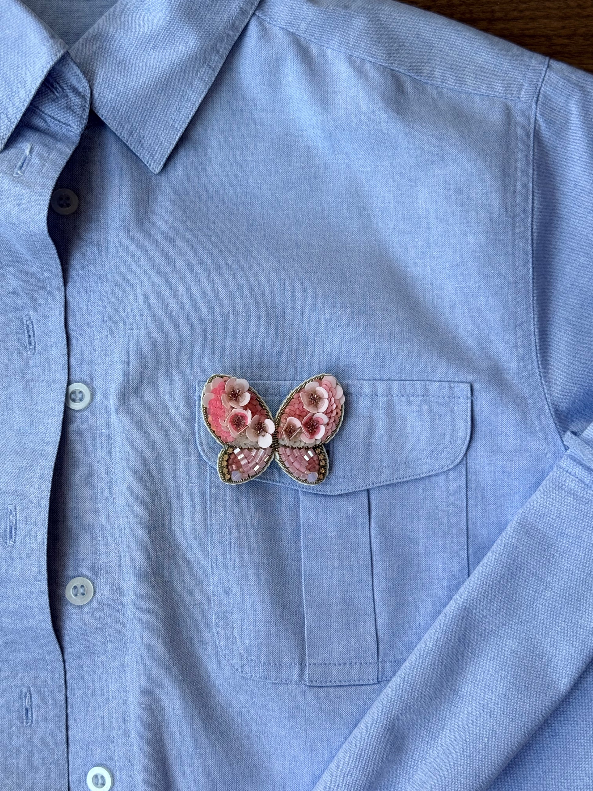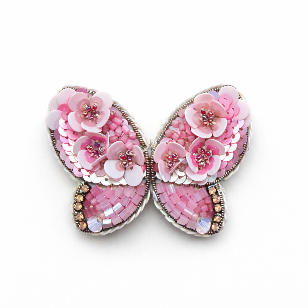 Broszka „Różowy Motyl” to subtelna biżuteria handmade, wykonana w jednym, niepowtarzalnym egzemplarzu.