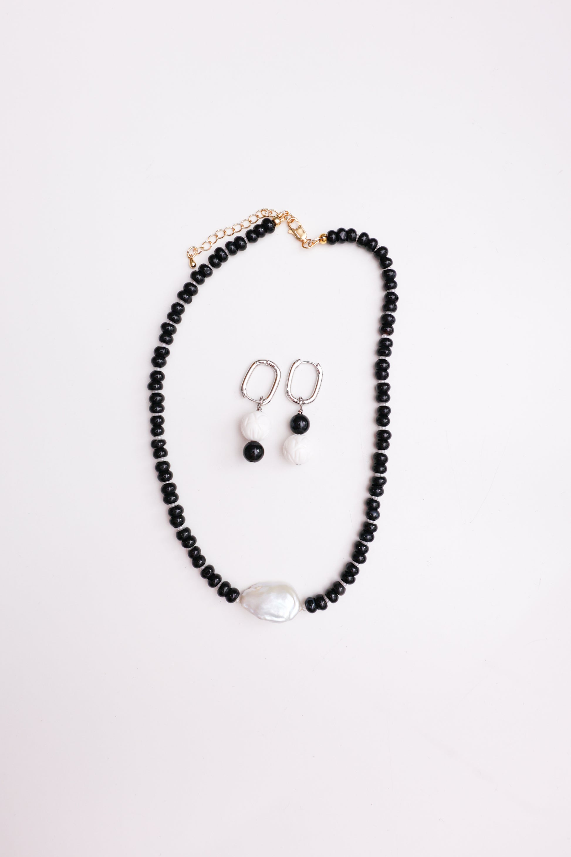 Kontrast głębokiej czerni z delikatnym, mlecznym połyskiem masy perłowej tworzy elegancką, ponadczasową kompozycję. Subtelne detale i minimalistyczna forma sprawiają, że kolczyki doskonale uzupełniają zarówno codzienne stylizacje, jak i bardziej wyrafinowane zestawy.