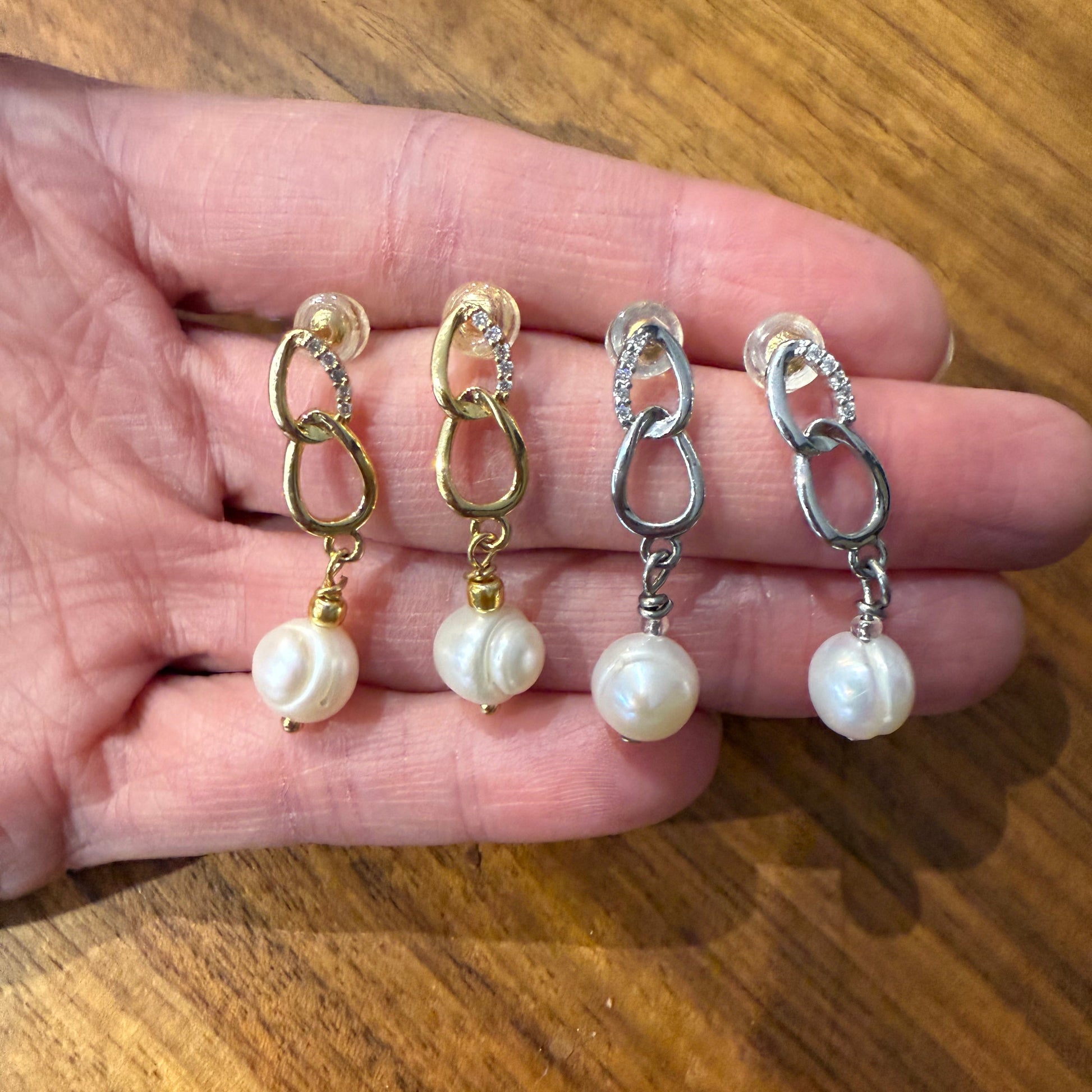 Eleganckie kolczyki z naturalnymi perłami to połączenie klasyki i subtelnego blasku. Perły o nieregularnej, organicznej formie podkreślają naturalne piękno, a pozłacane/rodowanymi okucia inkrustowane cyrkoniami dodają biżuterii delikatnego światła i szlachetności.