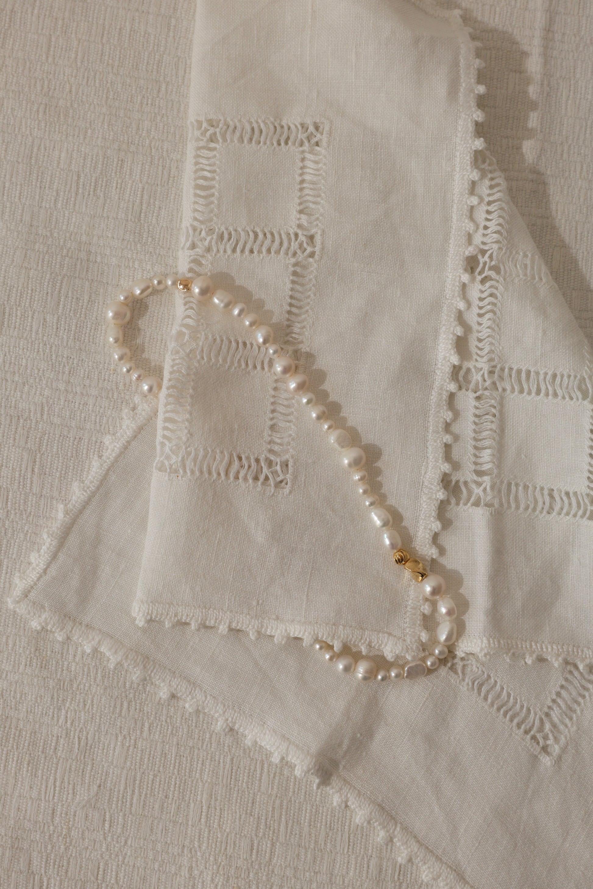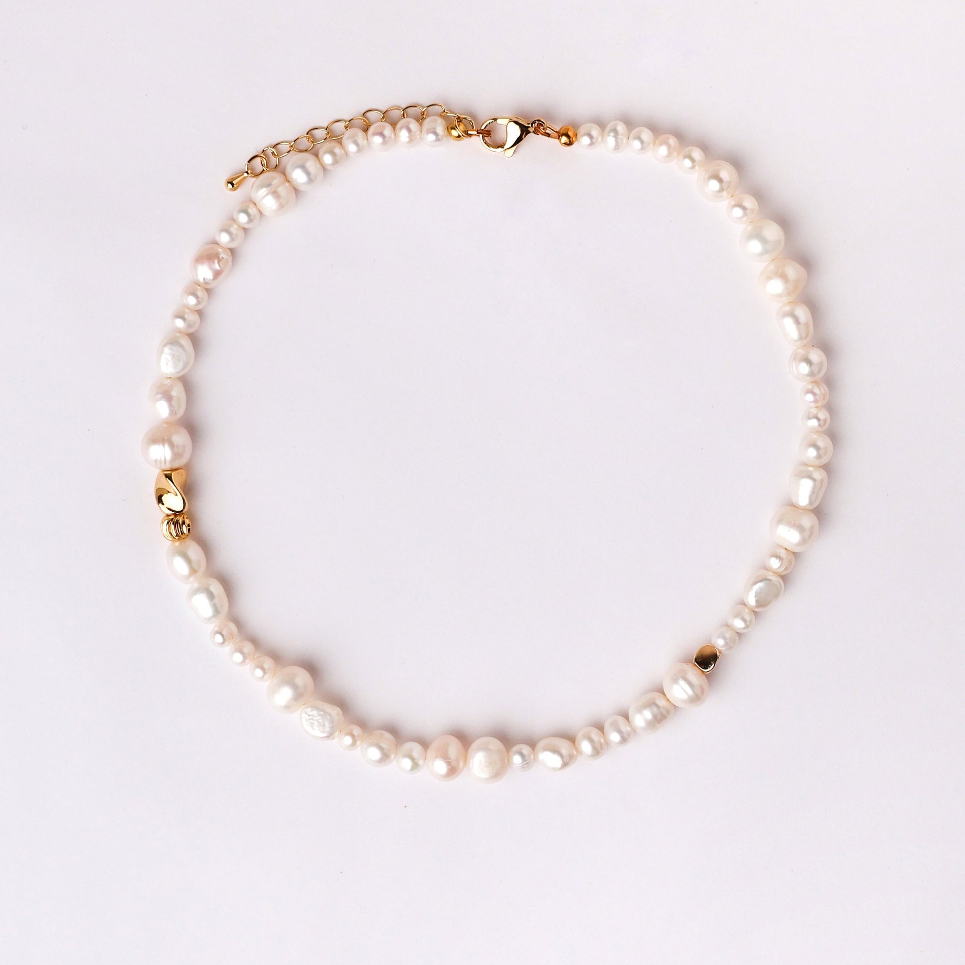 Ręcznie wykonany naszyjnik z nieregularnych słodkowodnych pereł to elegancja, która nigdy nie wychodzi z mody. Połączenie perłowego blasku i złoconych elementów tworzy subtelną, ale wyrazistą biżuterię, idealną na każdą okazję – od codziennych stylizacji po wyjątkowe momenty.