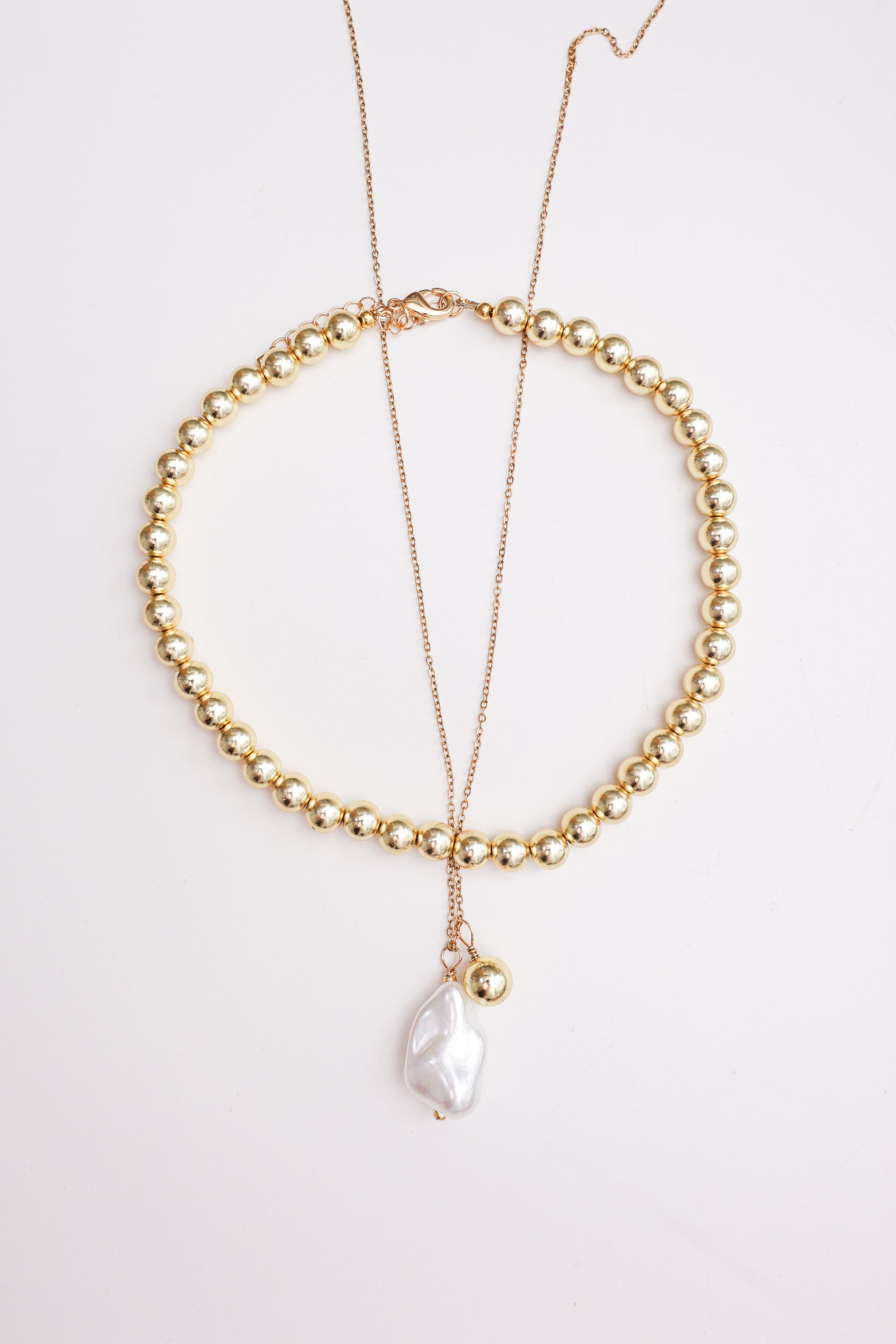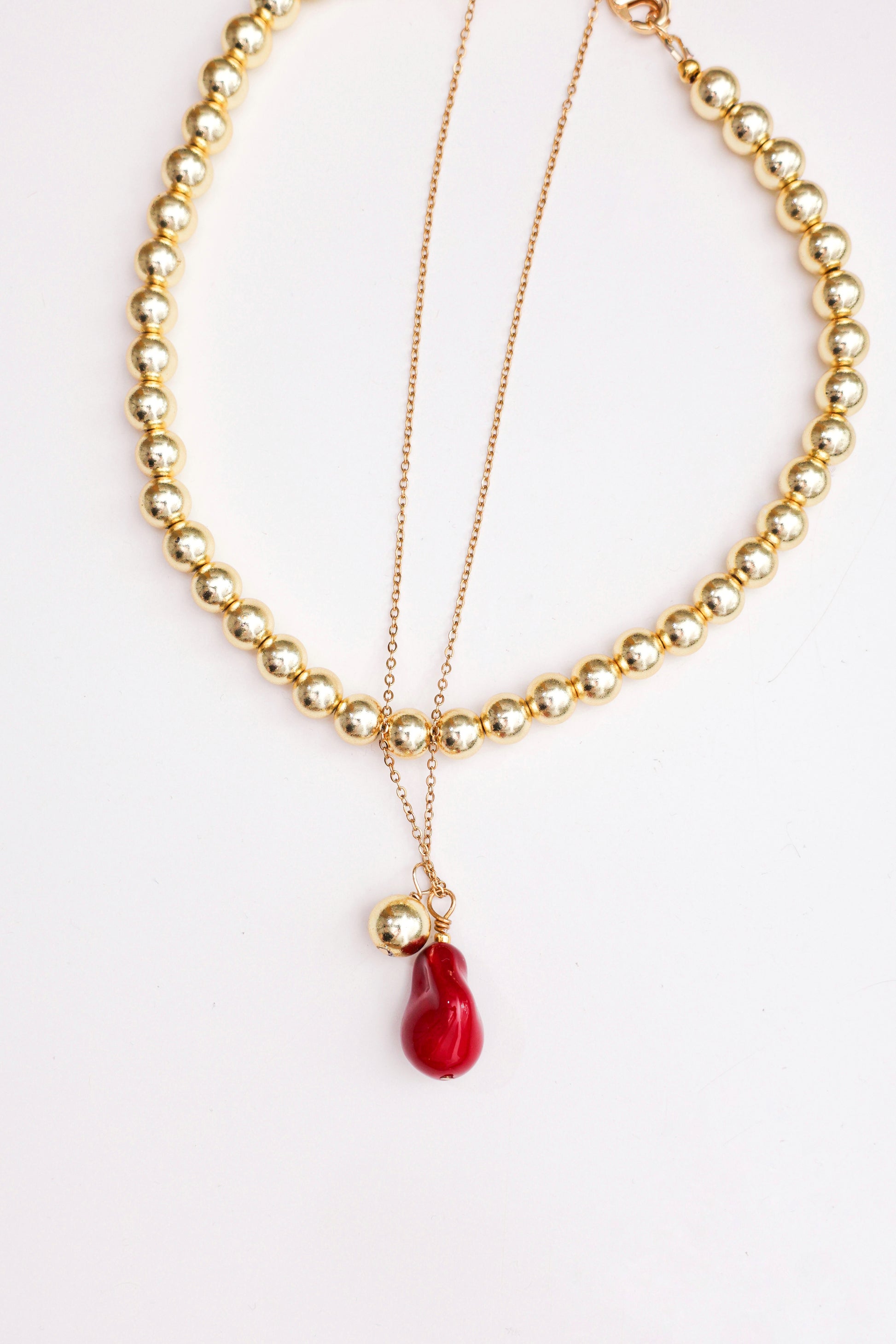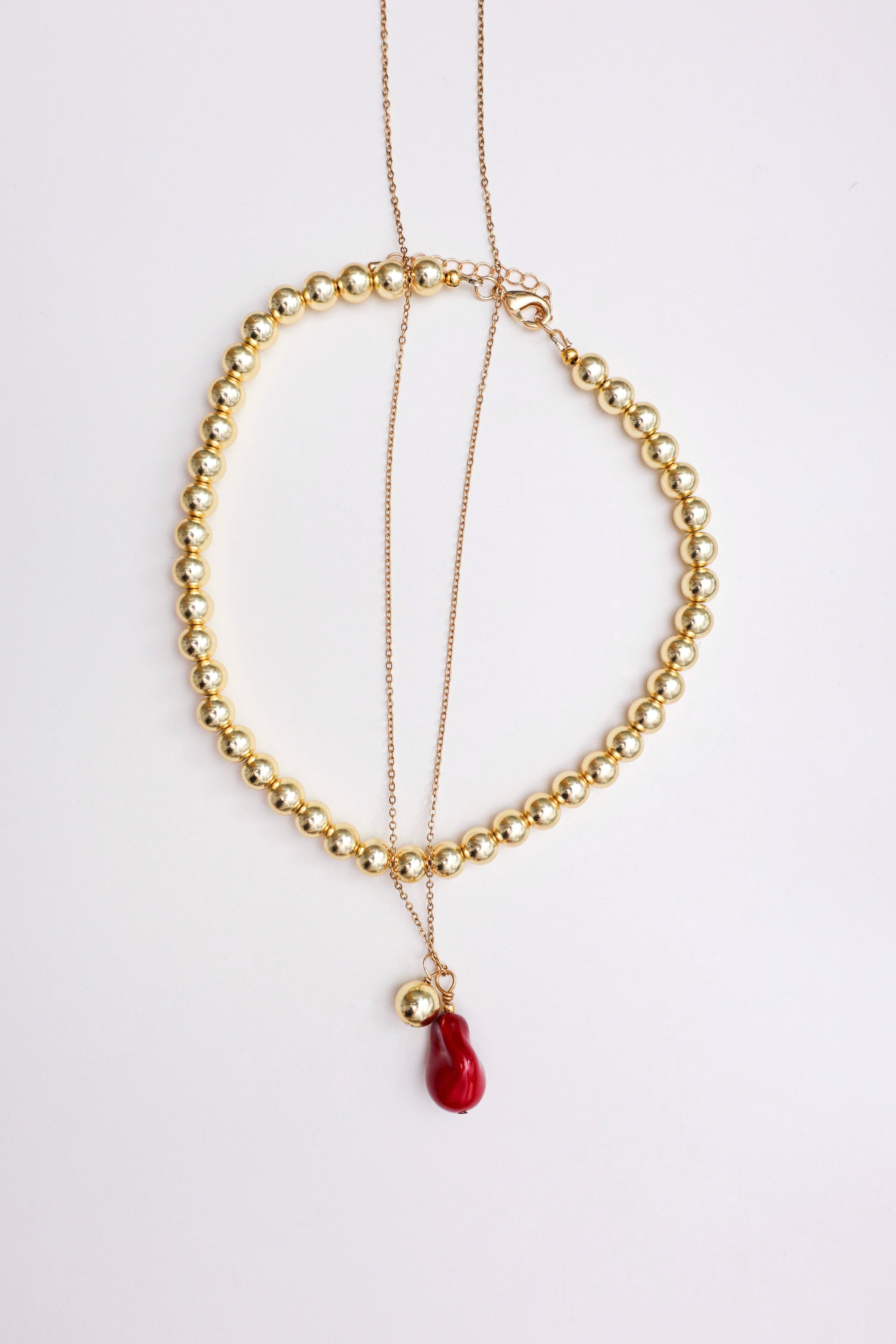 Naszyjnik wykonany z pozłacanego hematytu oraz wykończony pozłacaną 18-karatową furrniturą.