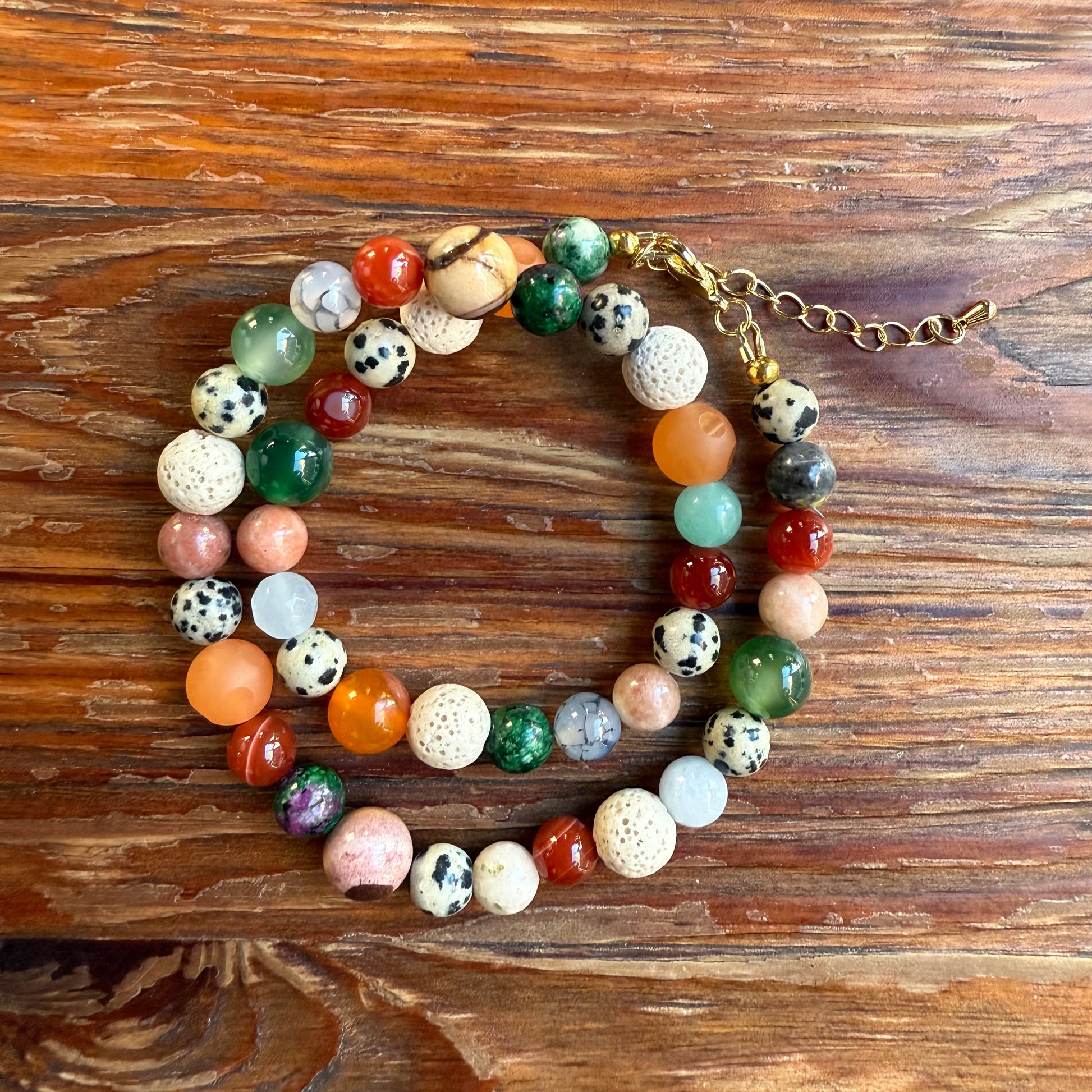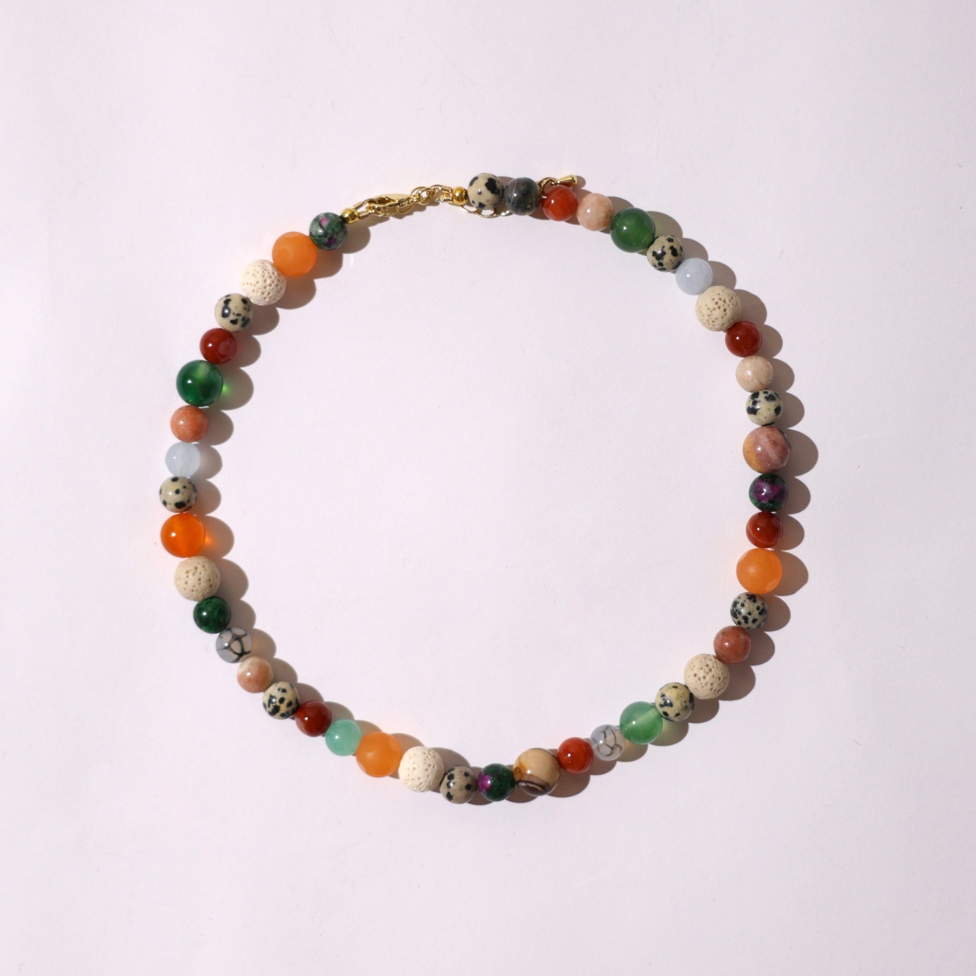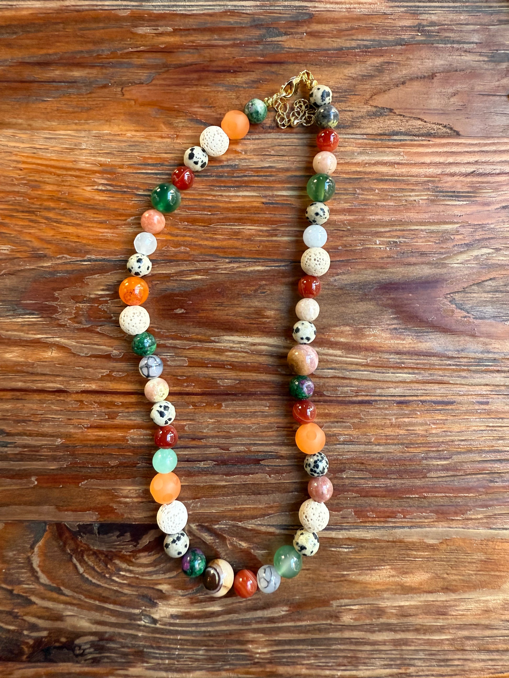 Naszyjnik z mieszanki naturalnych kamieni: agatów, jaspisu i lawy