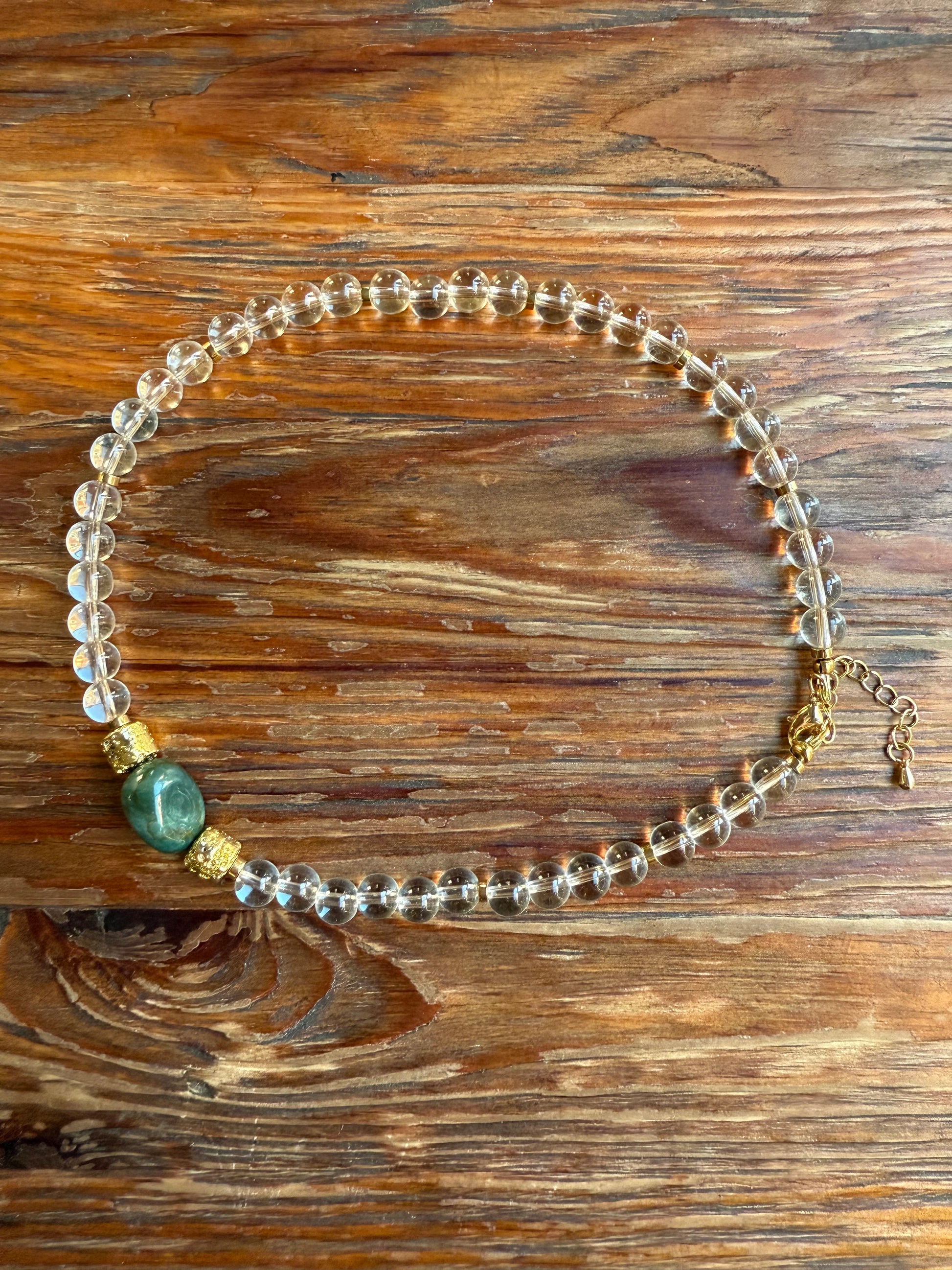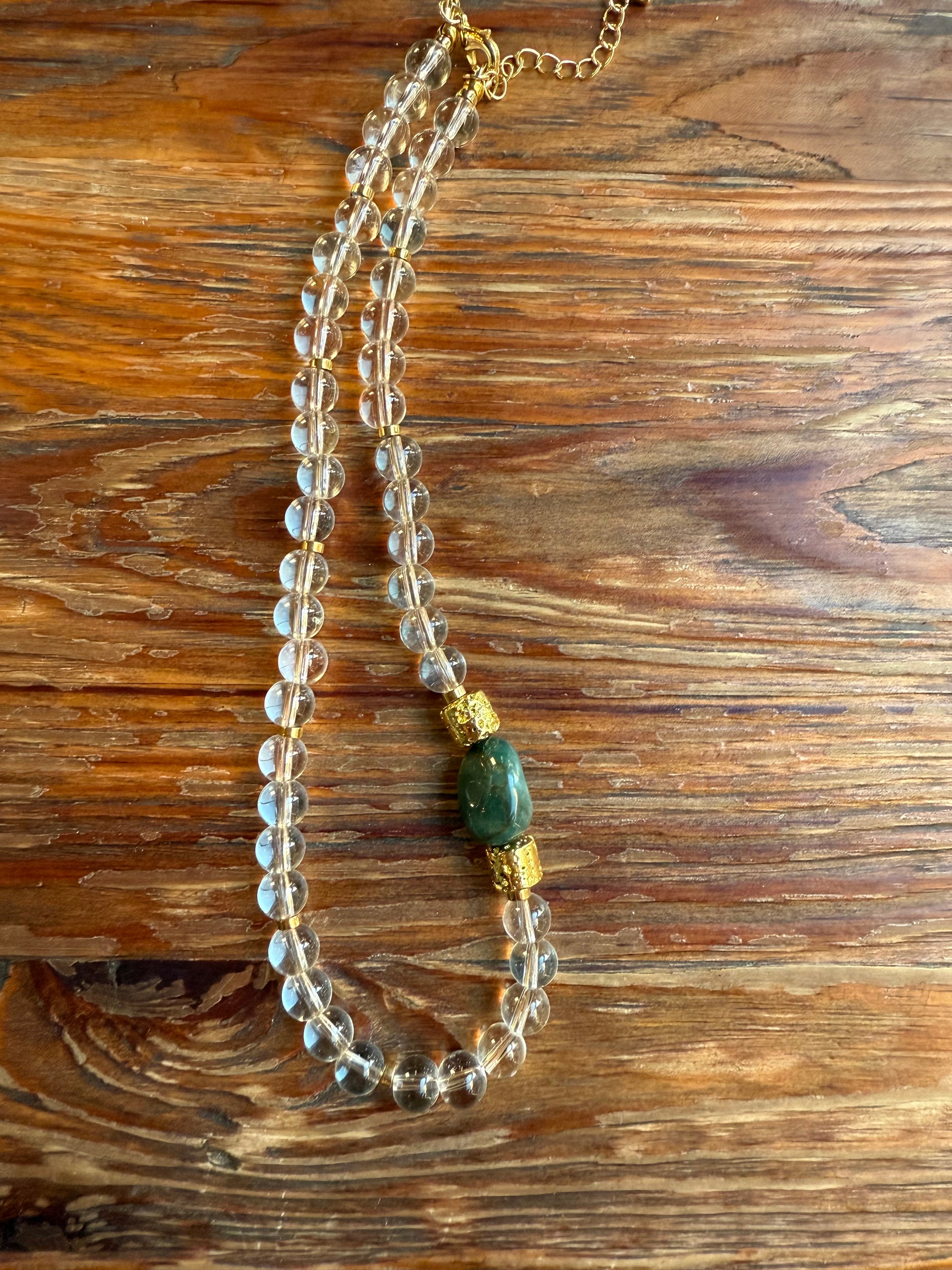 Naszyjnik z kryształu górskiego, jaspisu i pozłacanej lawy