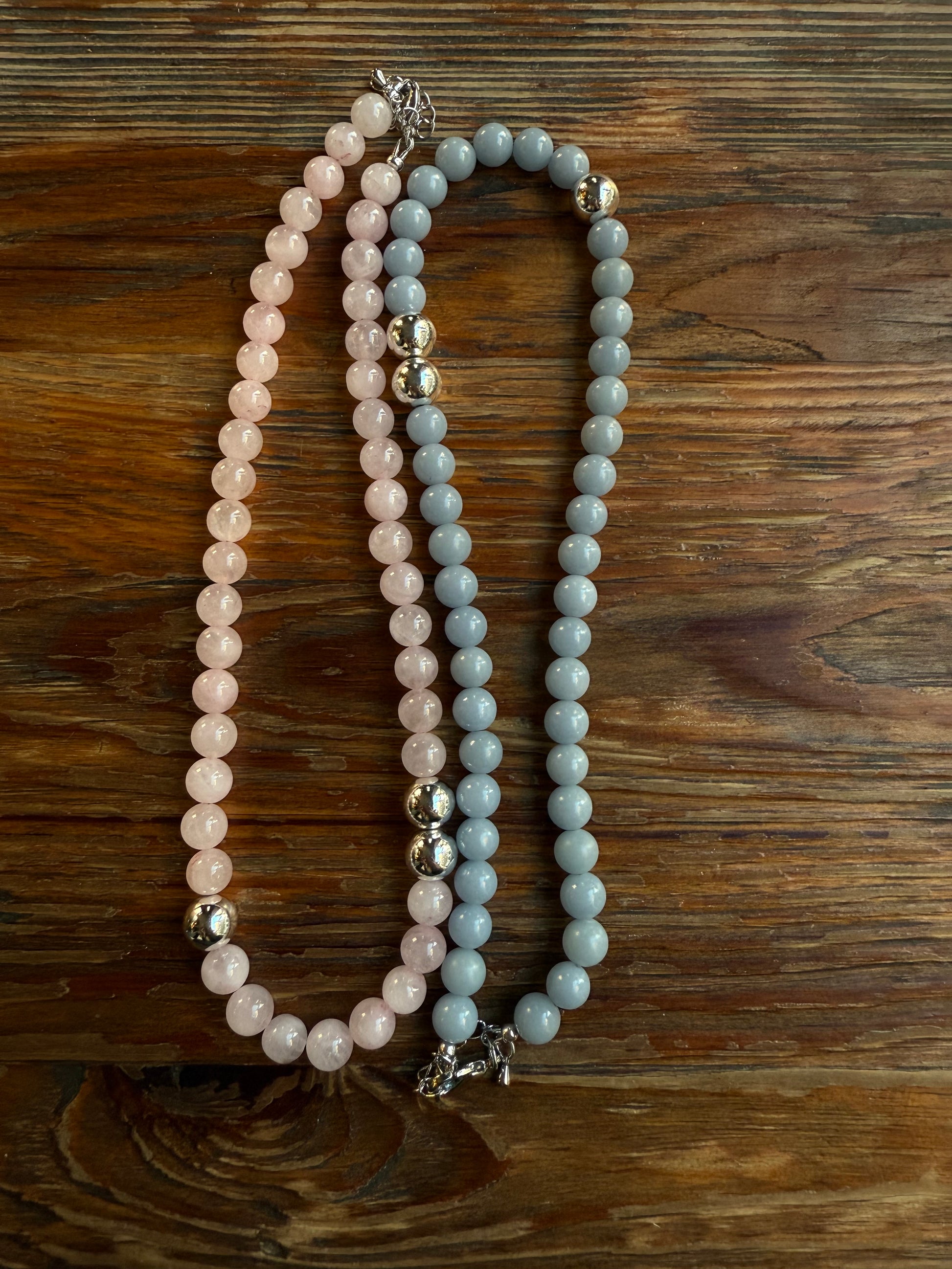 Delikatny jak poranna mgła — ten naszyjnik łączy różowy kwarc, kamień miłości i harmonii, z posrebrzanym hematytem, symbolem siły i równowagi.