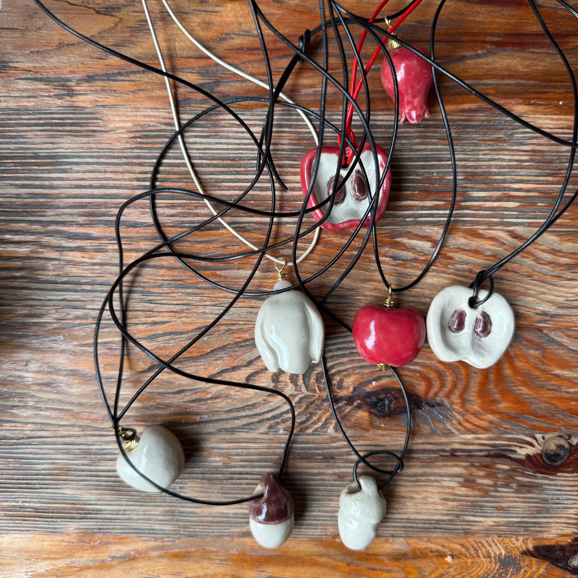 Każdy egzemplarz został ręcznie uformowany i szkliwiony, dzięki czemu każdy wisiorek jest niepowtarzalny.