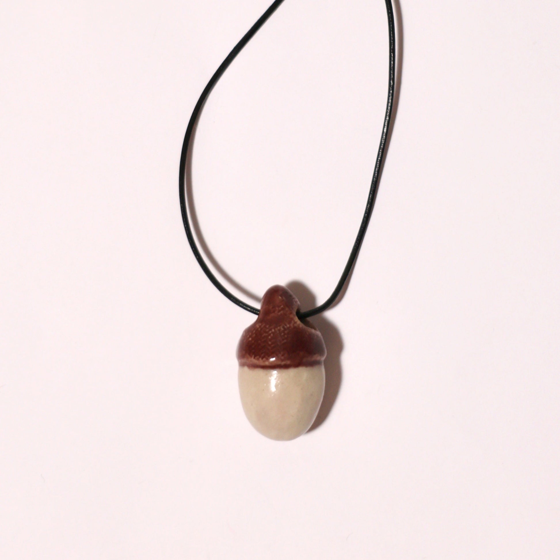 Delikatny, symboliczny i inspirowany naturą — ten ceramiczny wisiorek w kształcie żołędzia został wykonany i szkliwiony ręcznie w małej pracowni.