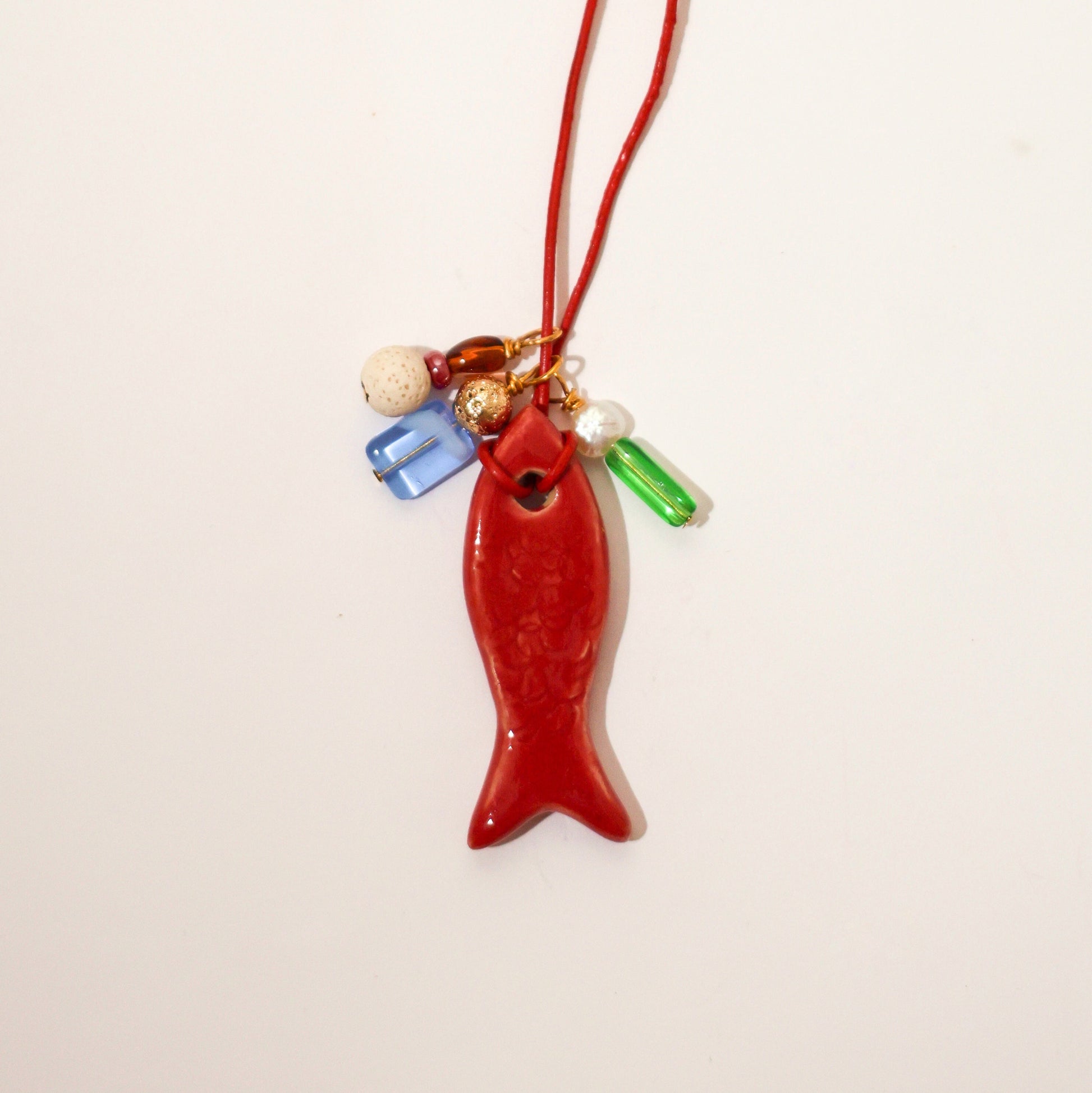 Zawieszka ceramiczna „Rybka” – czerwień z energią i symboliką(Czerwona)